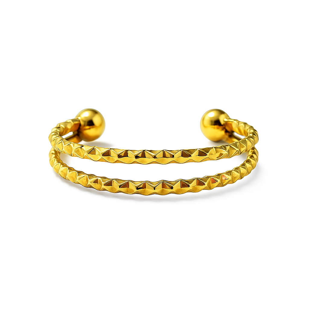 Bague double, fine martelé. – Ajustable. Acier chirurgical hypoallergénique.