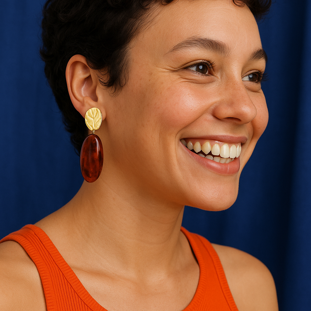 Boucles d’oreilles en acier chirurgical et résine hypoallergénique. Résistantes à l’eau et durables, idéales au quotidien.
