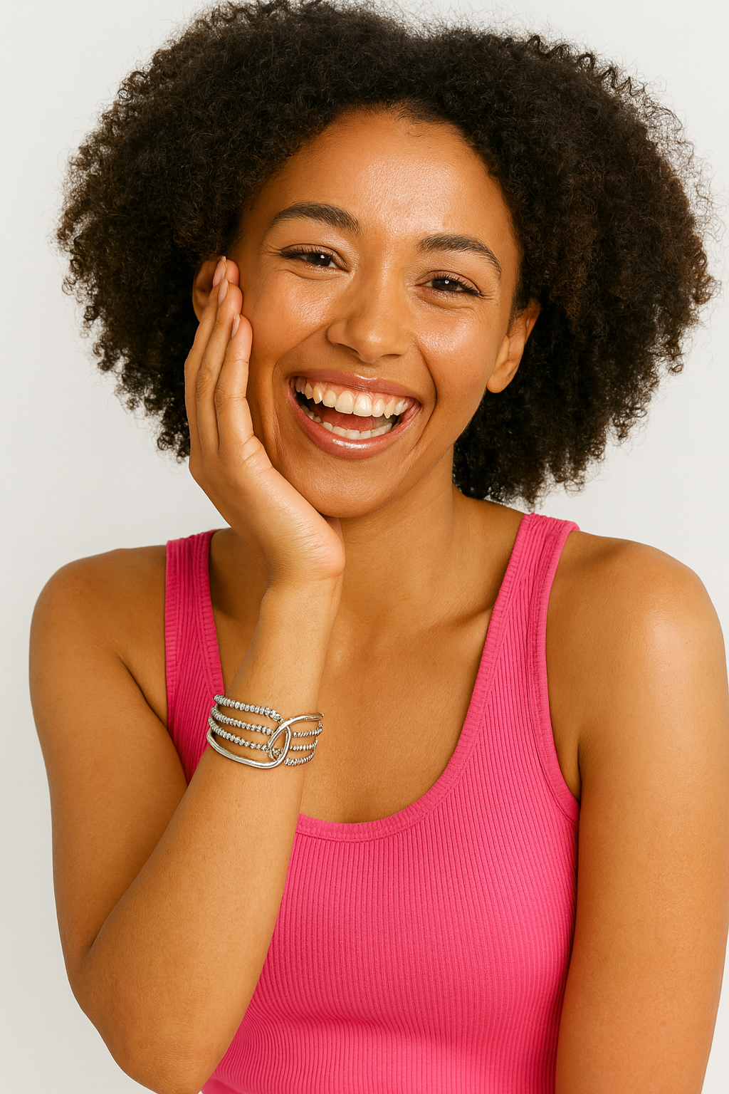 Bracelet en acier chirurgical : résistant à l’eau, hypoallergénique et facile à vivre. Ne noircit pas, ne rouille pas — parfait pour un look Chéri Chérie 🍒.